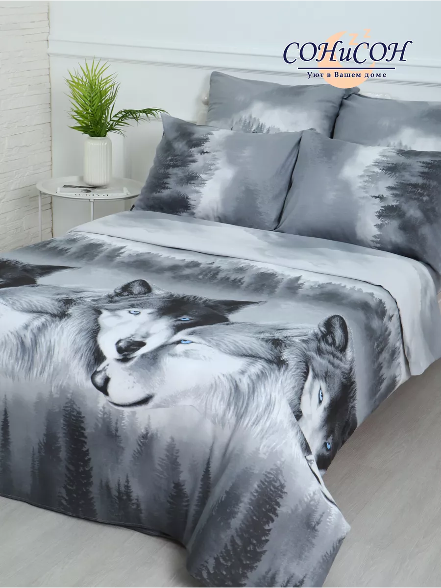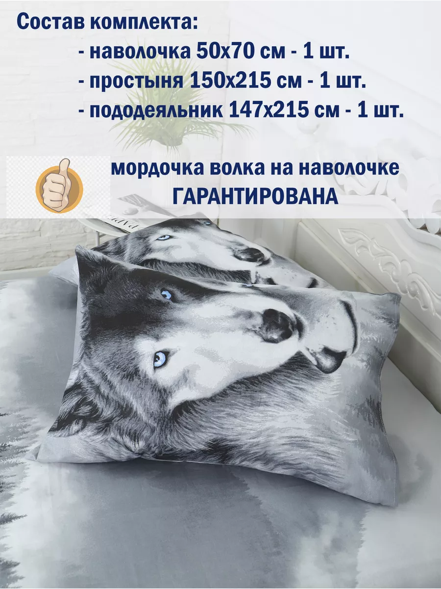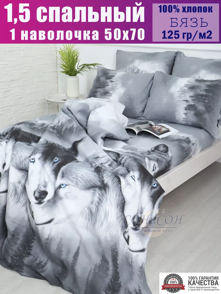 Чудесное 1,5 спальное постельное белье из 100% хлопка (бязь) детское и взрослое, обеспечит комфортный сон в любой сезон. Прекрасно подойдет для теплой квартиры и для дома/дачи. Натуральные ткани помогут обеспечить прекрасную воздухопроницаемость жарким душным летом и согреют зимой. Ткань плотная, 125 гр/м, что гарантирует долговечность даже после многих стирок. Мы тщательно следим за производством на каждом этапе, поэтому убеждены и гарантируем высокое качество выпускаемой продукции. Замечательные дизайны прекрасно подойдут взрослому в спальню или ребенку в детскую, мужчине или женщине. Наш 1,5 спальный комплект имеет презентабельный внешний вид. Ищете подарок на День Рожденья, Новый год, 14 февраля, 23 февраля, 8 марта, именины или новоселье? Смело выбирайте дизайны: Сумерки (волки). Обращаем внимание, что в комплекте 1 наволочка 50*70.. Размер 1,5-спальный: пододеяльник 147х215, простыня 150х215 , наволочка 50х70 -1шт.