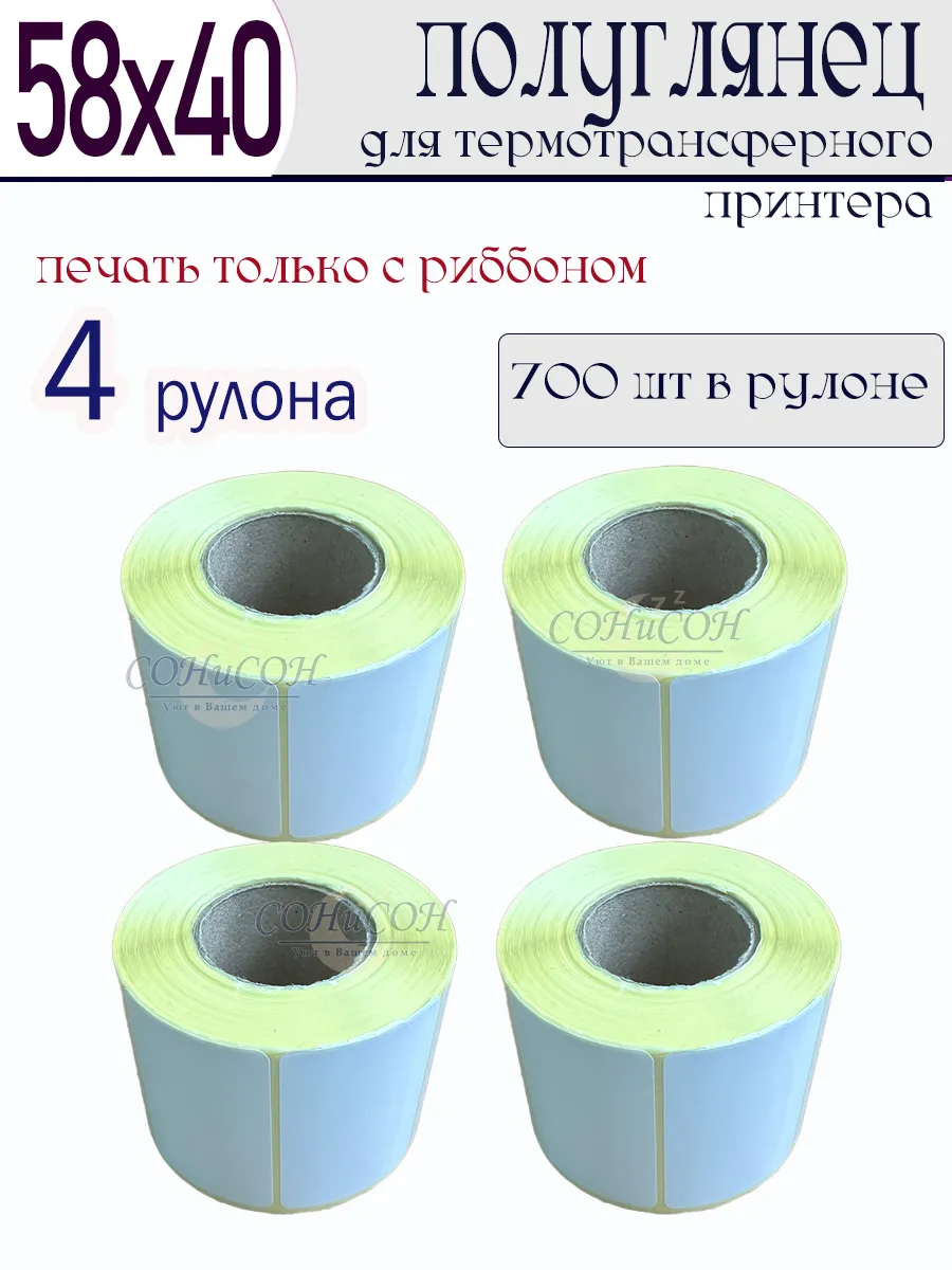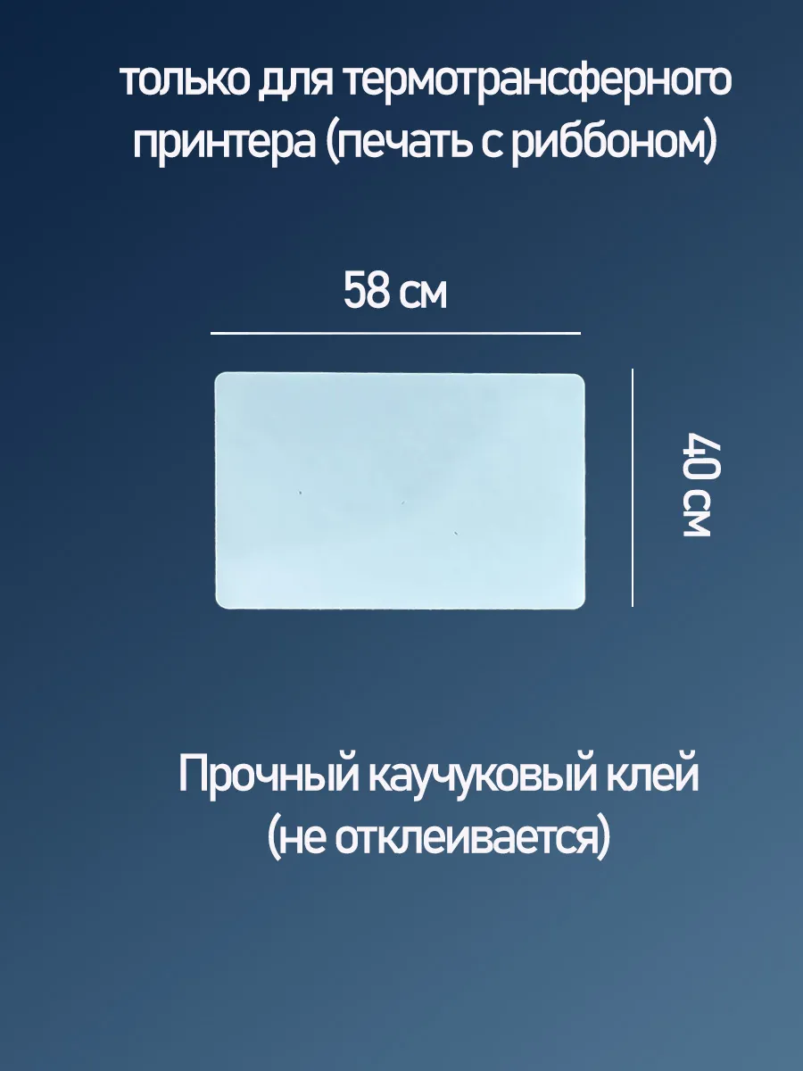 Самоклеящиеся этикетки 58х40 см, полуглянец, подходят только для термотрансферного принтера (печать с риббоном). Обладают отменным клеевым слоем, который намертво приклеивается к пакетам и пленкам, исключают обман со стороны недобросовестных покупателей, которые переклеивают этикетки.Прекрасно подходят для печати кодов Честный знак (КИЗ ГИС МТ). За счет печати с риббоном, информация не смазывается, не выцветает, не выгорает