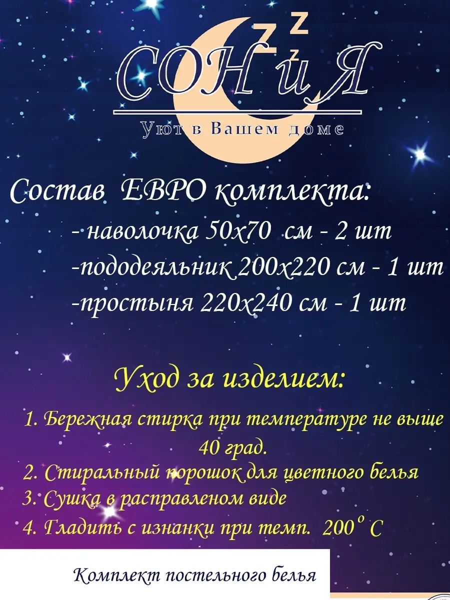 ЕВРО комплект из натурального 100% хлопка (тип плетения - бязь), которое подарит комфортный сон и придаст роскошный вид Вашей спальне. Натуральные ткани природного происхождения подходят для любого сезона, выгодно отличаются мягкостью, прочностью и долговечностью в эксплуатации. Бязь обладает прекрасной воздухопроницаемостью и хорошо поддается глажке. Перед первым применением рекомендуется стирка с кондиционером. Размер ЕВРО: пододеяльник 200х220 см, простыня 220х240 см, наволочка 50*70 - 2 шт. Обращаем Ваше внимание, что оттенки могут отличаться из-за цветопередачи и яркости экрана. Рисунок на наволочках может быть смещён. Комплект упакован в ПВХ пакет с вкладышем и может стать прекрасным подарком на Новый год, Новоселье, свадьбу, День Рожденья, Рождество, 23 февраля, 8 марта.Прекрасно подойдет, как подарок маме, папе, бабушке, дедушке, коллеге, мужчине, любимой, девушке #постельное белье евро #Евро комплект #200х220 #недорогое постельное белье евро #постельное белье хлопок.