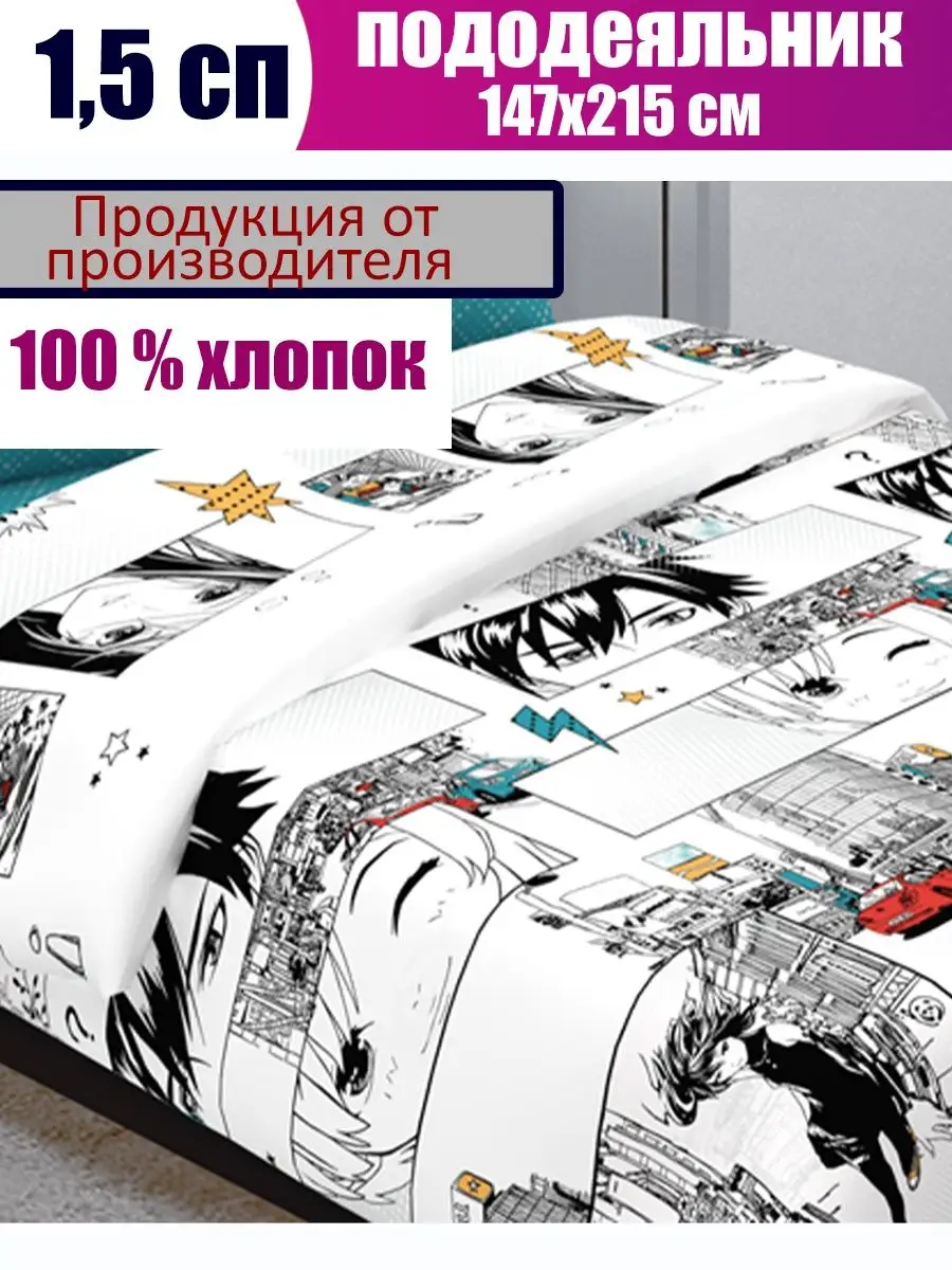 Пододеяльник Аниме 147*215 из бязи высочайшего качества серии СОН и Я -100% хлопковой ткани. Плотность ткани -125 гр на квадратный метр, поэтому она очень износостойкая и прочная, не скатывается и не электризуется, гигиеничная и гипоаллергенная. Перед использование рекомендуется стирка с кондиционером на бережном режиме 30-40 градусов.Пододельник сохраняет свой первоначальный вид и цвет вплоть до 1000 стирок. С нашим пододеяльником - ночь нежна, сны как сказка, лето и зима комфортны. Даже Ваш сонный кот выспится на нашем пододеяльнике. Вы можете собрать из нашей продукции комплект постельного белья по индивидуальным размерам, выбрав интересующую расцветку ткани, размер пододеяльника, наволочек, тип и размер простыни. Рекомендуем к данному пододеяльнику простыню на резинке Аниме 90*200 с бортом 20 см-артикул117548866, простыня на резинке 90*200 с бортом 20 см бирюзовая -арт.59017841, наволочка Анимэ 50*70 -арт.43038246, наволочка 70*70 -арт.85076298, одеяло-покрывало Аниме-арт.56504409, арт.56504410