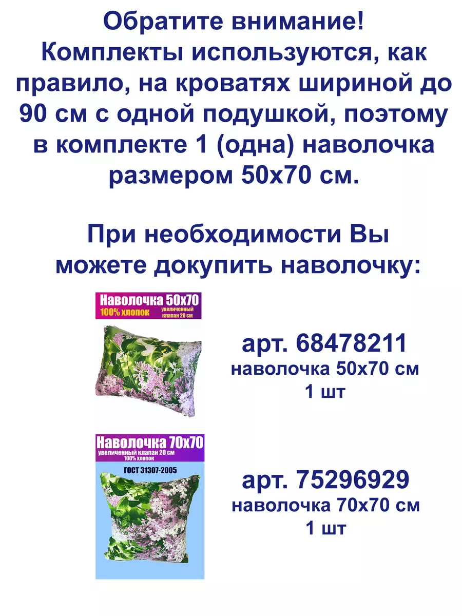 пододеяльник (без застежки) - 1 шт, простынь (без резинки) - 1 шт, наволочка (без застежки) - 1 шт.