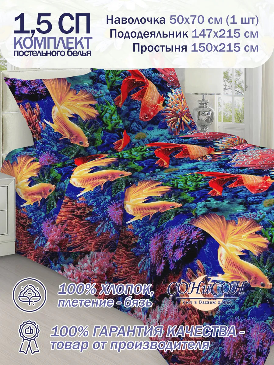 Постельное белье 1,5 спальное СОНиСОН - идеальный выбор для создания уютной атмосферы в вашей спальне. Этот комплект постельного белья выполнен из высококачественного натурального хлопка, который обеспечивает комфорт и легкость во время сна. Комплект постельного белья 1.5 спальный состоит из пододеяльника 147х215 см-1шт(без застежки), одной наволочки 50х70 и простыни (обычная) 150х210 см-1шт. Благодаря своему стильному дизайну, постельное белье полуторка СОНИСОН станет стильным акцентом в вашей спальне, а также понравится Вашему ребенку. Чтобы комплект радовал глаз долгое время за ним конечно же надо правильно ухаживать. Стирать постельные белье полуторное бязь следует при температуре воды от 30 до 40 градусов. При стирке комплект постельного белья не смешивать с другими типами тканей. Запрещено использование отбеливающих средств и порошков с пометкой для белого белья. Подарите этот комплект постельного белья своим родным, детям и близким или друзьям. Полутороспальное постельное белье хлопок СОНиСОН - прекрасный подарок на новоселье или годовщину, Новый год или рождество. Ночь нежна и расслаблена с постельным бельем СОНиСОН. Так же хотим напомнить что проверять комплектацию, цвет, качество ткани и упаковку лучше в пункте выдачи заказов, так как категория "Постельное белье" является невозвратной, несоответствующий описанию товар изначально выкупать не надо. Все размеры наших комплектов указаны в характеристиках (заказать комплект и померить на свою кровать к сожалению нельзя). Если же вы все таки обнаружили фабричный брак дома, то Вам необходимо заполнить заявку на проверку товара в личном кабинете. Обновите свою спальню и подарите себе и своим близким приятные моменты комфорта и уюта. Не пропустите возможность порадовать себя и своих близких качественным и красивым бельем СОНиСОН.