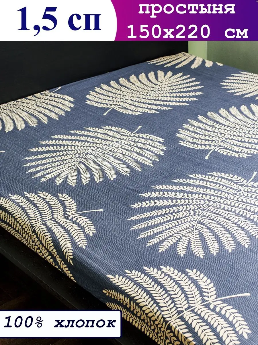 Классическая простынь 1,5-спальная, из 100% хлопка. Размер: 1,5-спальный - 150х215 см. Простыня подойдет для дивана и кресла. Натуральные ткани прекрасны для спальни для городской квартиры, но и для загородного дома и дачи. Дизайны подойдут и взрослым и детям. 1,5 спальное белье является самым распространенным, а простынь - самый востребованный предмет, тк всего первая "выходит из строя".