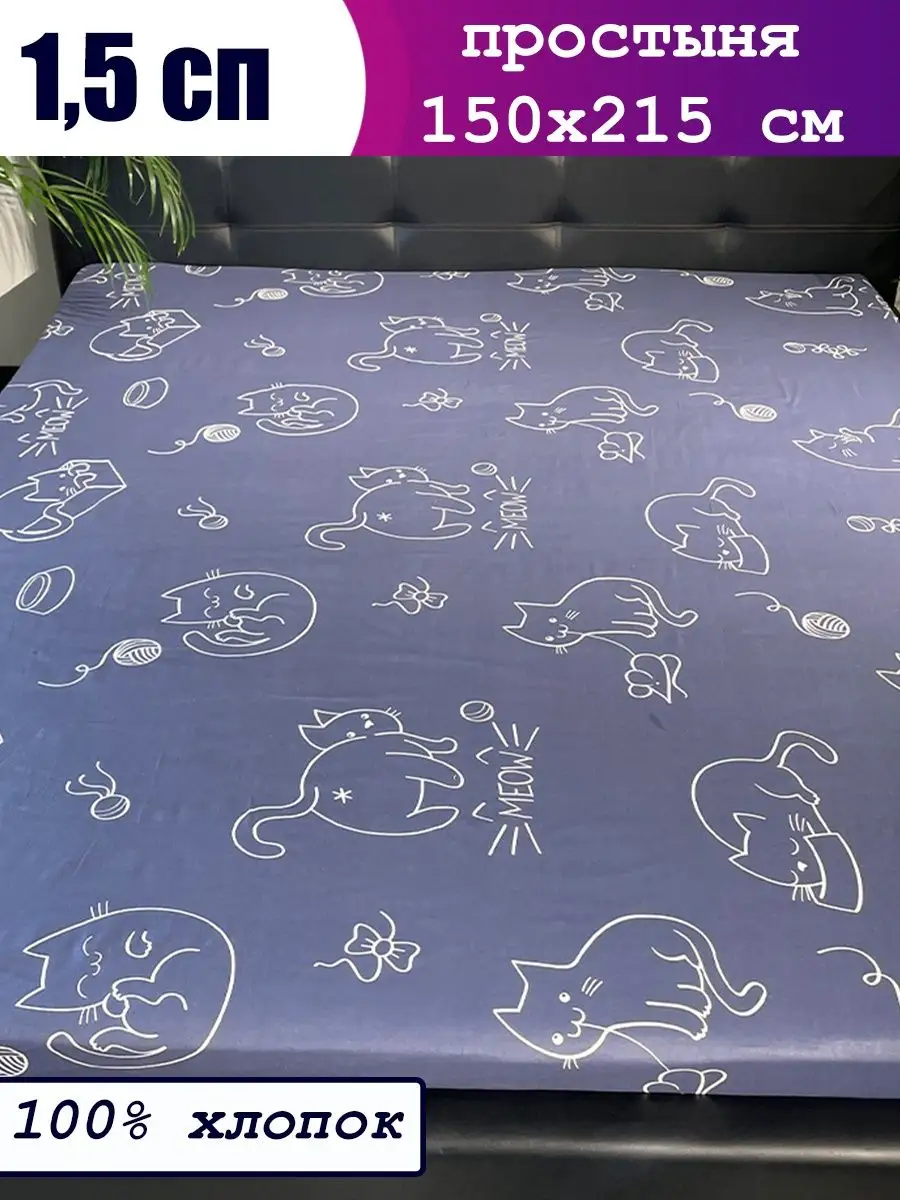 Классическая простынь 1,5-спальная, из 100% хлопка. Размер: 1,5-спальный - 150х215 см. Простыня подойдет для дивана и кресла. Натуральные ткани прекрасны для спальни для городской квартиры, но и для загородного дома и дачи. Дизайны подойдут и взрослым и детям. 1,5 спальное белье является самым распространенным, а простынь - самый востребованный предмет, тк всего первая "выходит из строя".