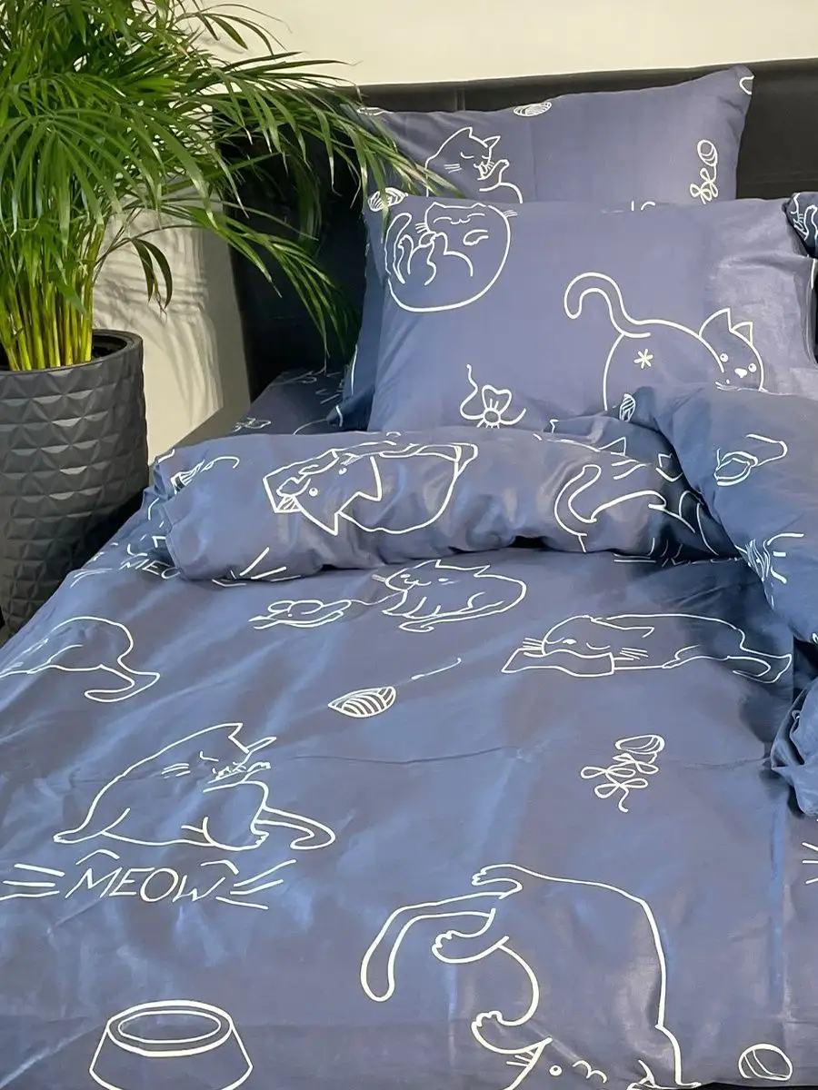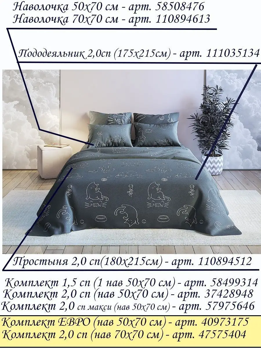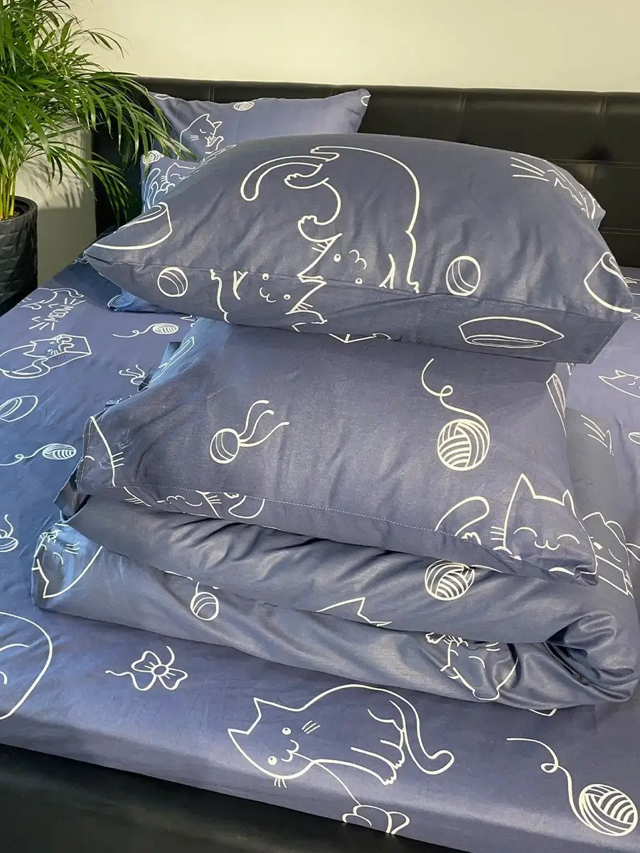 Красивая простыня синего цвета серии СОН и Я с рисунком котики, на резинке, 100% хлопок. Рассчитана на высоту матраса до 26 см. Резинка вшита по всему периметру простыни. Плотность ткани - 125 гр на квадратный метр, поэтому она прочная. Ткань не электризуется, гигиеничная и гипоаллергенная. Белье сохраняет свой первоначальный вид и цвет вплоть до 1000 стирок при температуре до 40 градусов. Изготовлено в России. В дизайне также представлены наволочки 58508476 (50 70), 110894613 (70х70), пододеяльники 120377621 (1,5 сп). 111035134 (2,0 сп), 119774478 (евро). Можно дополнить комплект наволочками, простыней или пододеяльником. Простыню можно презентовать как подарок на День Рождение или на любой праздник учителю, воспитателю, любимой, маме, жене, мужу, теще, свекрови, дочери, бабушке, дедушке, папе, другу, подруге, коллеге, начальнику, молодоженам на новоселье и супругам на юбилей свадьбы. У нас можно купить товары в подарок по акции или со скидкой от производителя, товары как в икеа. С нашим постельным бельем ночь нежна, сны как сказка, лето прохладное.