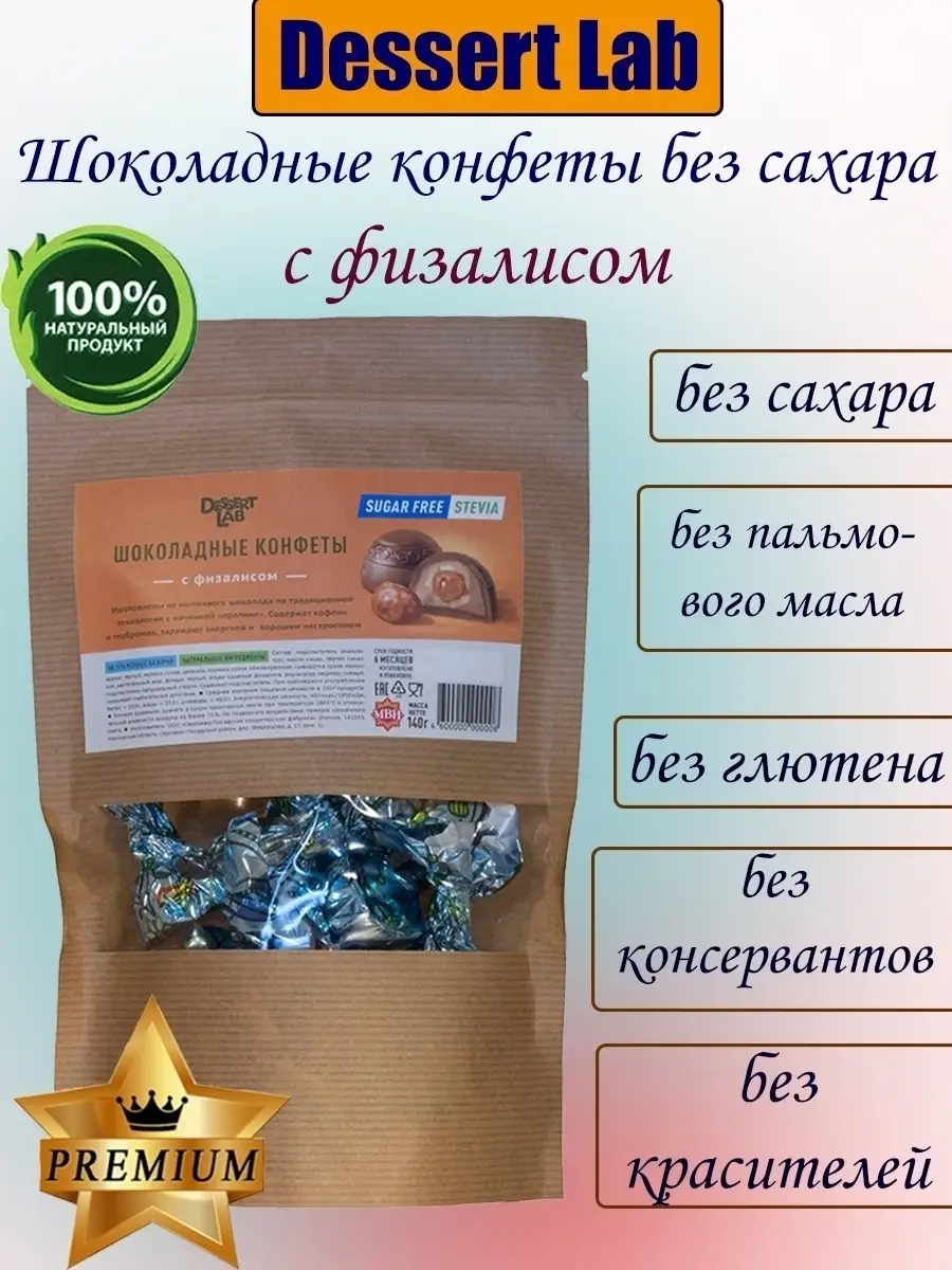 **Шоколадные Конфеты с физалисом для здорового питания** без сахара и без пальмового масла, красителей и консервантов, на натуральном какао масле, это настоящая победа вкуса среди конфет без сахара. Подойдут как правильный перекус и на десерт. Состав физалиса очень богат: углеводы, глюкоза, фруктоза, активнодействующие компоненты: танин, лимонная кислота, полифенолы, сапонин и физалин, витамины А, В1, В2, В6 и В12, органические кислоты. Физалис относится к низкокалорийным продуктам, в 100 г плода всего 55 кКал. Улучшает работу пищеварительной системы и укрепляет иммунитет. Его употребляют при авитаминозе. Сладкие вкусняшки включают в свой рацион приверженцы правильного питания и здорового образа жизни, веганам, для диабетиков. Их рекомендуют для беременных, кормящих женщин и для детей. Подойдут для офиса, на ресепшен. Идеальны, как сладкий подарок учителю, воспитателю, сыну, любимой, маме, жене, мужу, теще, свекрови, дочери, бабушке, дедушке, папе, другу, подруге, коллеге, начальнику.