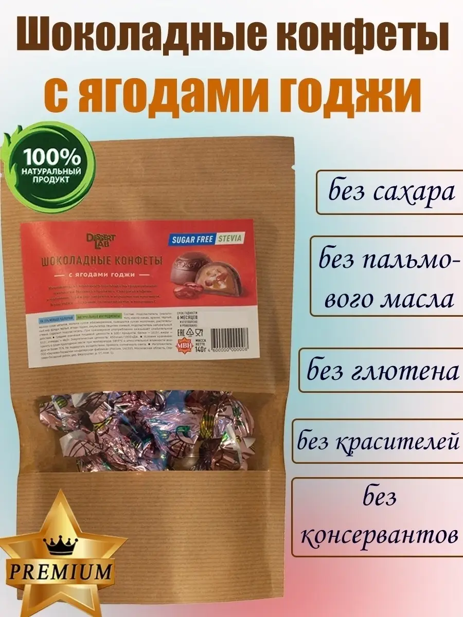 Шоколадные конфеты с ягодами годжи изготовлены из молочного шоколада по традиционной технологии, это настоящая победа вкуса среди конфет без сахара. Начинка пралине. Содержат кофеин и теобромин, заряжают энергией и хорошим настроением. Ягоды годжи - источник антиоксидантов и витамина С. Сахар заменен на натуральный подсластитель - экстракт стевии, медовой травы. Стевия по вкусу слаще сахара, при этом в ней отсутствует сахар. Конфеты менее калорийны по сравнению с классическим аналогом. Продукт подходит для тех, кто следит за питанием и фигурой, для беременных и кормящих женщин, а также для диабетиков. Не содержит пальмовое масло, глютен, красители и консерванты. Конфеты подойдут для офиса, в подарок учителю, воспитателю, ребенку, сыну, любимой, маме, жене, мужу, теще, свекрови, дочери, бабушке, дедушке, папе, другу, подруге, коллеге, начальнику. Можно использовать как украшения для торта, мороженого и других десертов, как сладкий подарок на День Рождение, Новый год. Полезный перекус.